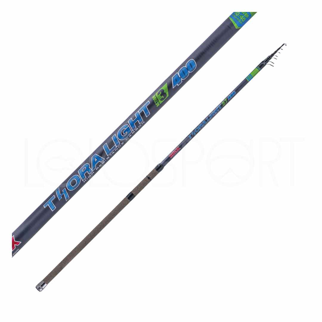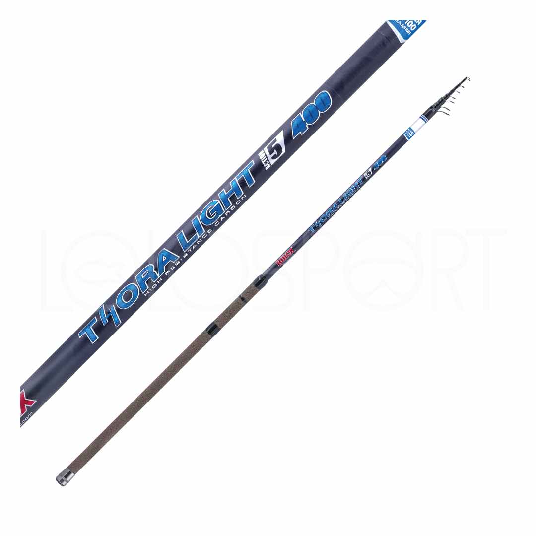 La classica serie di canne telescopiche dedicate alla pesca all’inglese e con la bombarda si chiama Bulox Thora Light e viene riproposta per il 2021 nella sua seconda edizione, con una veste grafica completamente rinnovata e migliorata nei dettagli. Il fusto della Thora Light è realizzato in carbonio intrecciato, riconoscibilissimo nella classica finitura a spirale incrociata, monta anelli a ponte medio e la placca è a slitta, capace di alloggiare anche mulinelli di grande taglia. L’ azione del fusto è parabolica condizione indicata per realizzare lunghi lanci, e presenta una schiena importante, capace di una grande riserva di potenza.