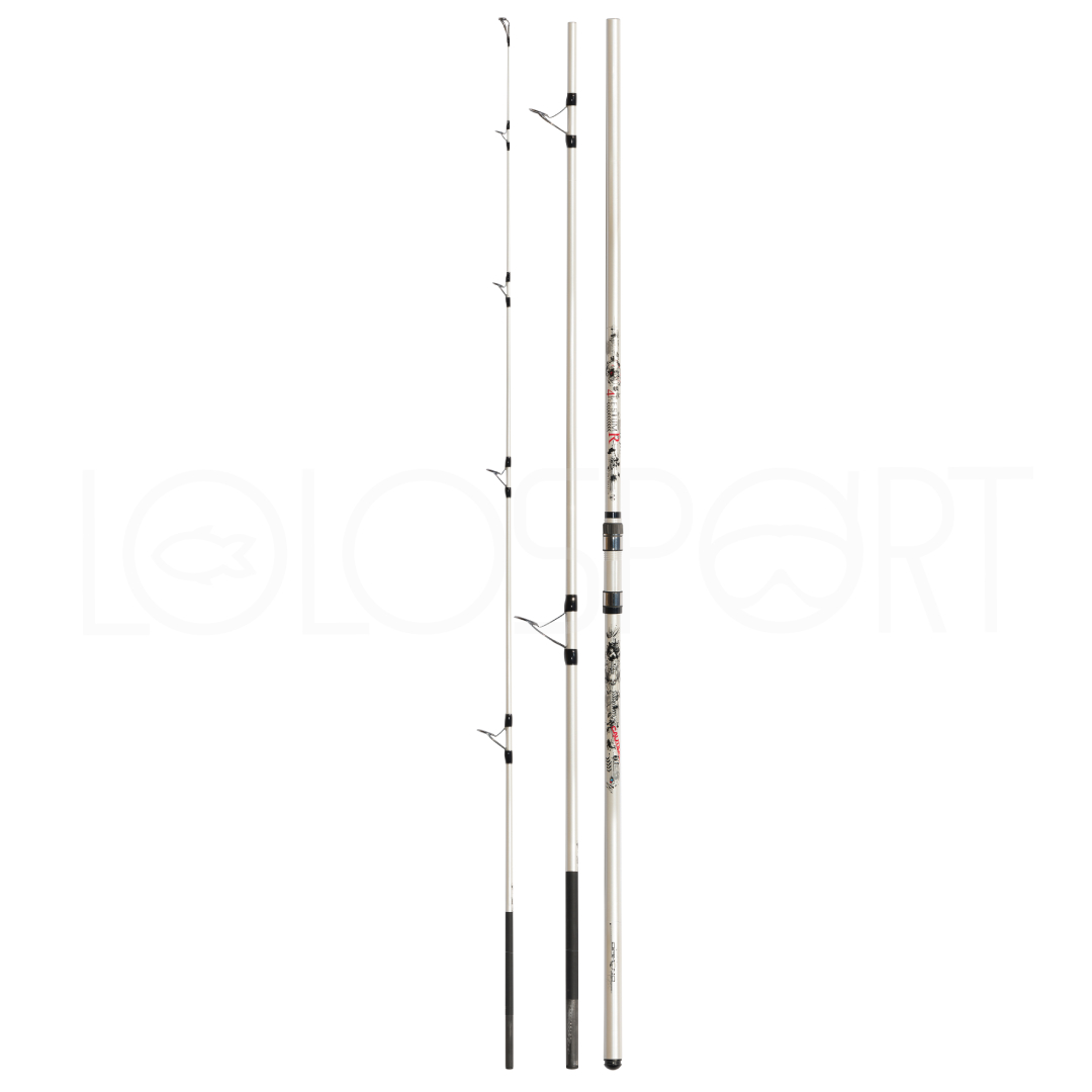 Può lanciare quasi 300 grammi con esca, offrendo un margine molto ampio, sia per cercare grosse spigole o ombrine, sia per tentare grosse razze chitarra o squali di acque calde.