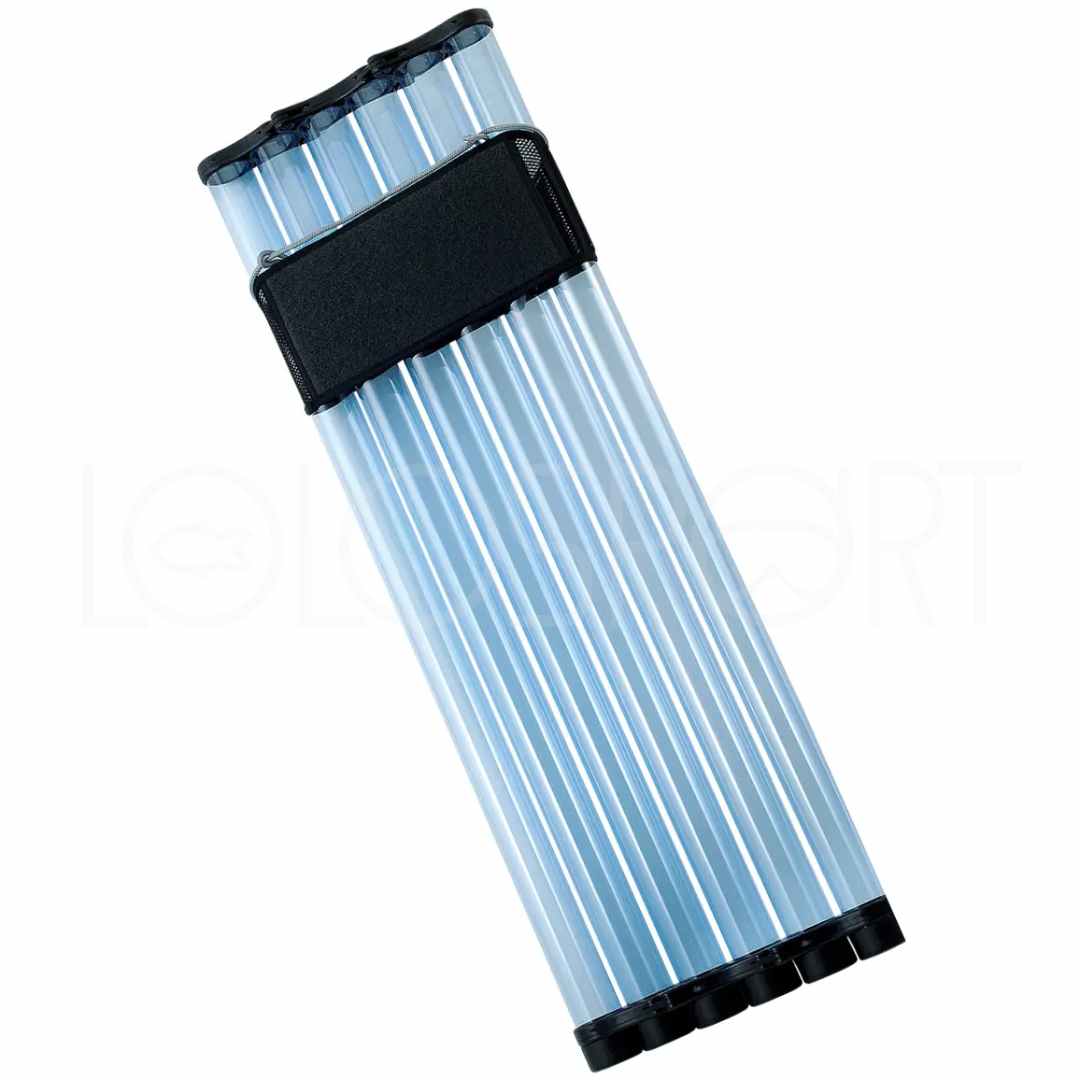 L’Ikazuno Cannon è un utilissimo accessorio per la pesca a tataki. Questa particolare pesca ai cefalopodi dalla barca sfrutta infatti finali armati con diversi artificiali: l’Ikazuno Cannon aiuta a semplificarne la gestione, consentendo di alloggiare ogni artificiale (fino a 6) in un’apposita “canna” per poi calare in acqua il piombo. Questo permette di evitare grovigli sia in fase di lancio che di recupero, consentendo un’azione di pesca più veloce, ordinata ed efficiente.