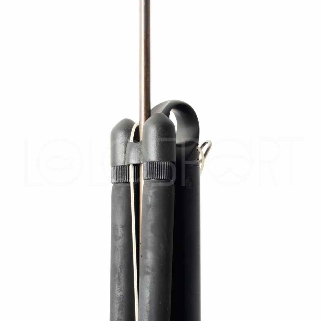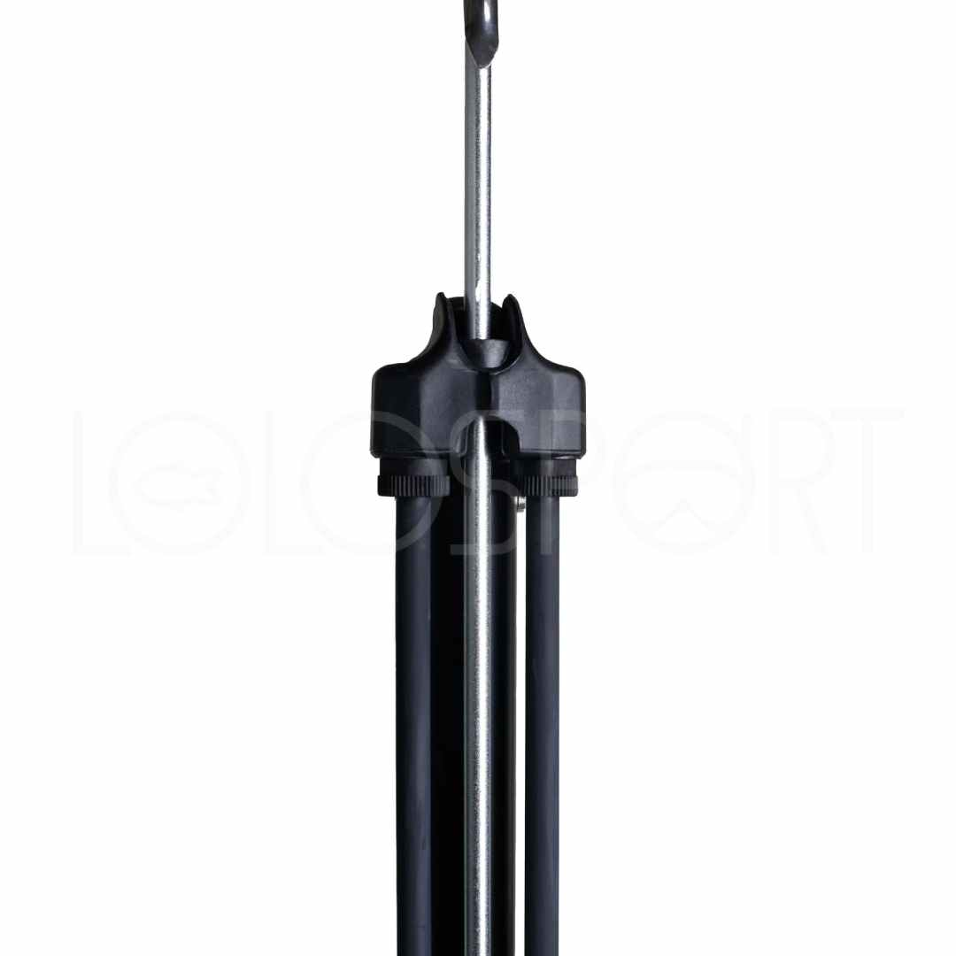 Sulla parte inferiore dell’impugnatura è presente un anello robusto per la sagola, mentre nella parte anteriore ci sono 3 sganciasagola, l’innesto a coda di rondine per il mulinello e un supporto guida-asta di ultima tecnologia.