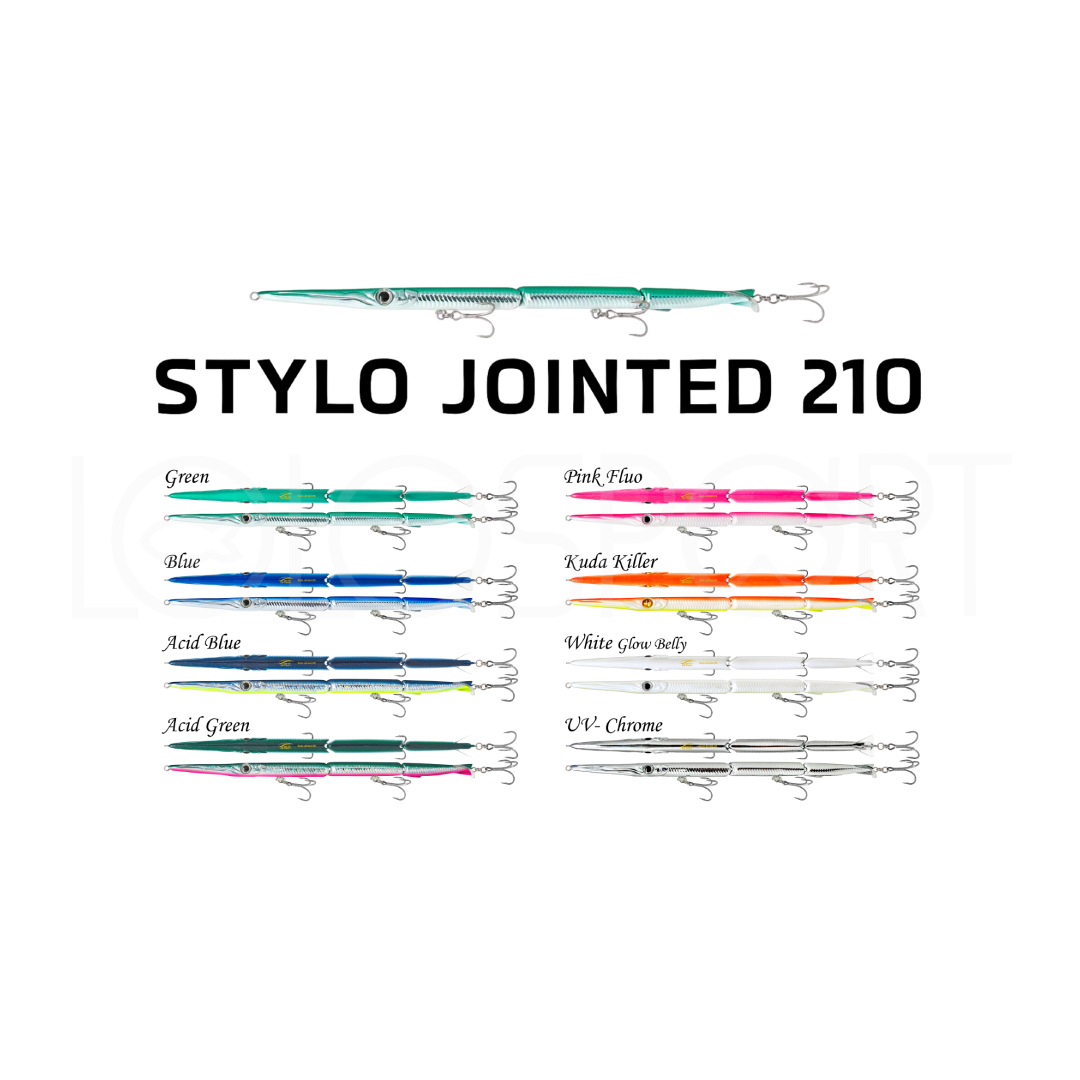 Lo Stylo Jointed 210 della Jackfin nasce come versione più compatta e versatile dell’ormai affermato Stylo Jointed 255, del quale conserva i tratti distintivi che ne hanno decretato il successo: design immediatamente riconoscibile, nuoto realistico e un’estetica estremamente adescante, capace di imitare in modo credibile le sembianze dell’aguglia, uno dei foraggi più ricercati dai predatori costieri.