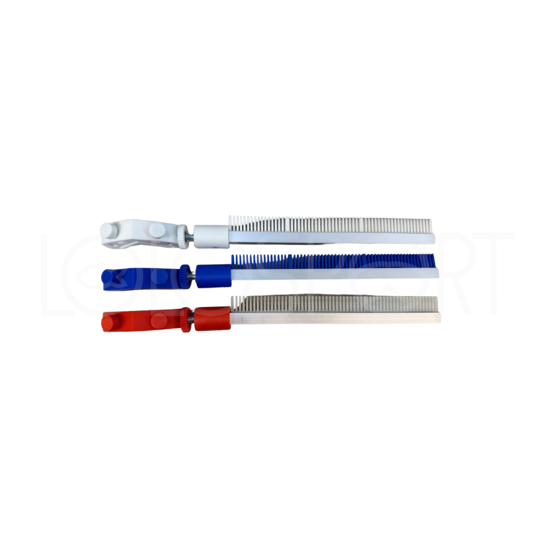 Il pettine stendi travi ha una lunghezza di 19 cm ed è realizzato in PETG resistente al calore, materiale robusto e adatto a un utilizzo pratico e continuativo.