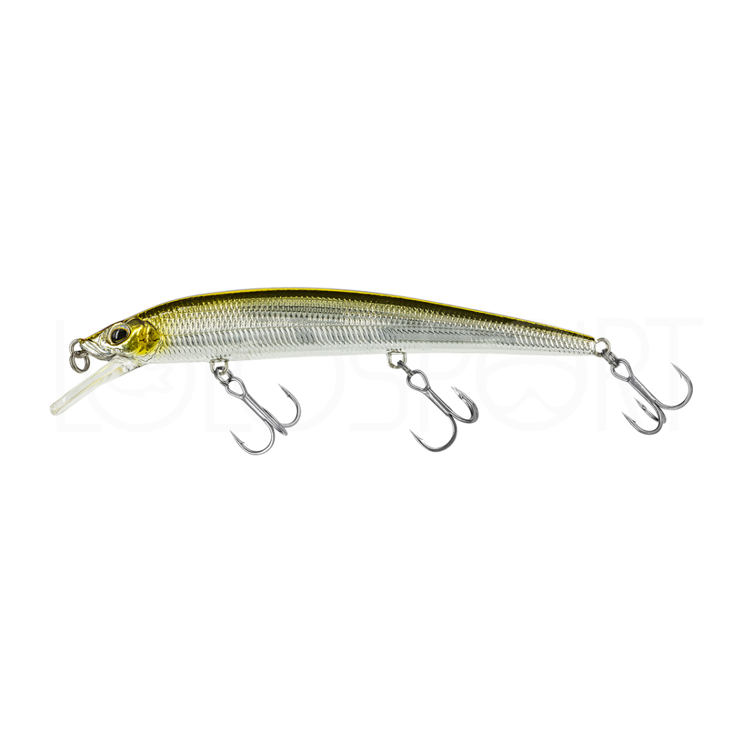 Jerkbait estremamente lanciabile con movimenti vibranti, un vero game changer. Il trasferimento del peso mobile all’interno dell’esca è ottenuto tramite un particolare cilindro in metallo con blocco magnetico nella parte anteriore, che ne garantisce lanci lunghi, precisi e un assetto ottimale in fase di recupero anche ad alte velocità o in presenza di forti correnti.
