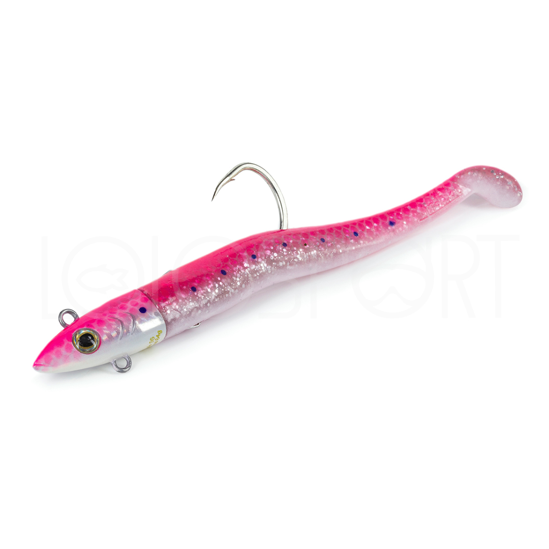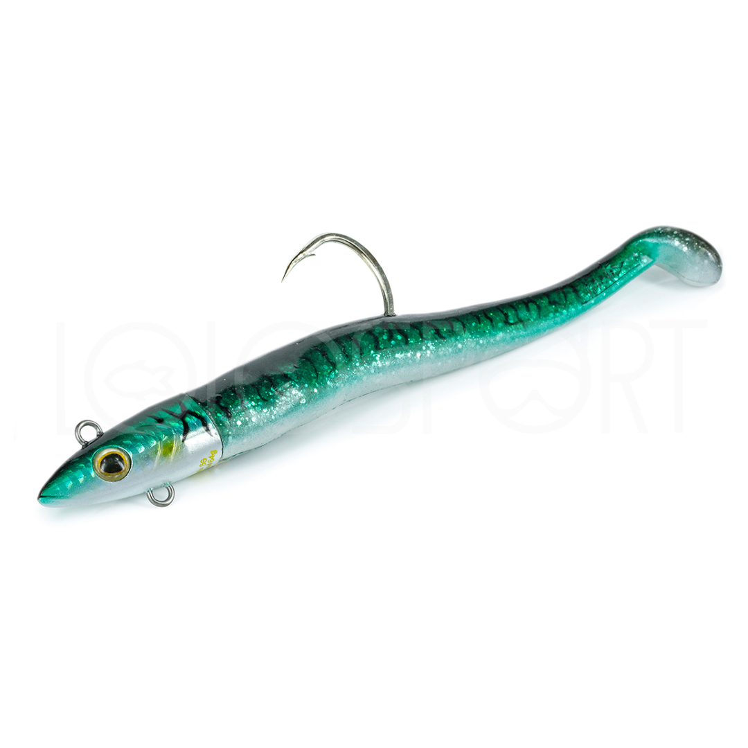 Il Jugulo Soft Shad è il nuovo shad in gomma per i grandi predatori. La mescola ultra resistente che costituisce il corpo è dotata di un paddle pieno e arrotondato che conferisce un movimento stretto e vibrante anche a velocità di recupero sostenute. La Jig head dal profilo idrodinamico pesa 60 grammi e determina un ottimale bilanciamento dell’esca. Realizzata con armatura passante full wire in acciaio inox è dotata di un innovativo sistema, che permette di fissare facilmente la coda shad senza il rischio che quest’ultima si possa sfilare durante l’azione di pesca. L’anello posto nella parte inferiore serve a montare un trebble hook o assist hook opzionale. L’amo è adeguato ai grandi predatori ed è fissato alla jig head tramite un robusto split ring che ne permette una maggiore mobilità; quest’ultima indispensabile per una gestione migliore dei predatori in caso di combattimenti prolungati riducendo così il rischio di slamata. Dal mare per tonni e ricciole, alle acque interne per lucci e siluri potrà essere un compagno di pesca insostituibile.