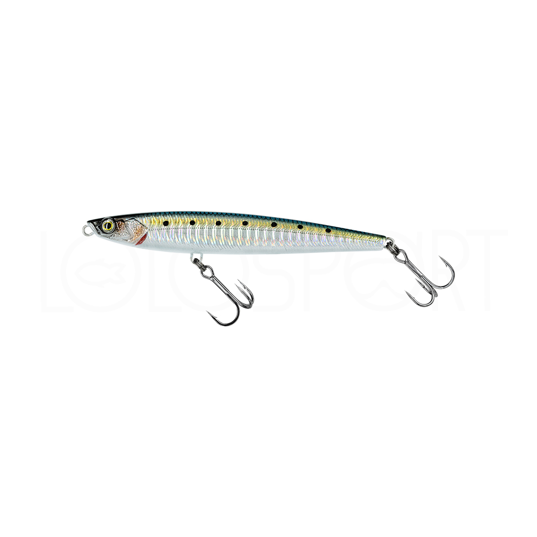 L’affondamento è stato calibrato per accentuare l’azione di rolling, mantenendo l’assetto orizzontale, così da aumentare le percentuali di strike già nei primi secondi dall’entrata in acqua. Il trasferimento del peso mobile all’interno dell’esca è ottenuto tramite un particolare cilindro in metallo con blocco magnetico nella parte anteriore; che ne garantisce lanci lunghi, precisi e un assetto ottimale e silenzioso in fase di recupero. Questo pencil risulta perfetta nelle condizioni in cui i predatori sono apatici e sospettosi. E’ stato equipaggiato con ancorette trattate con uno speciale finissaggio che le rende maggiormente resistenti alla corrosione.
