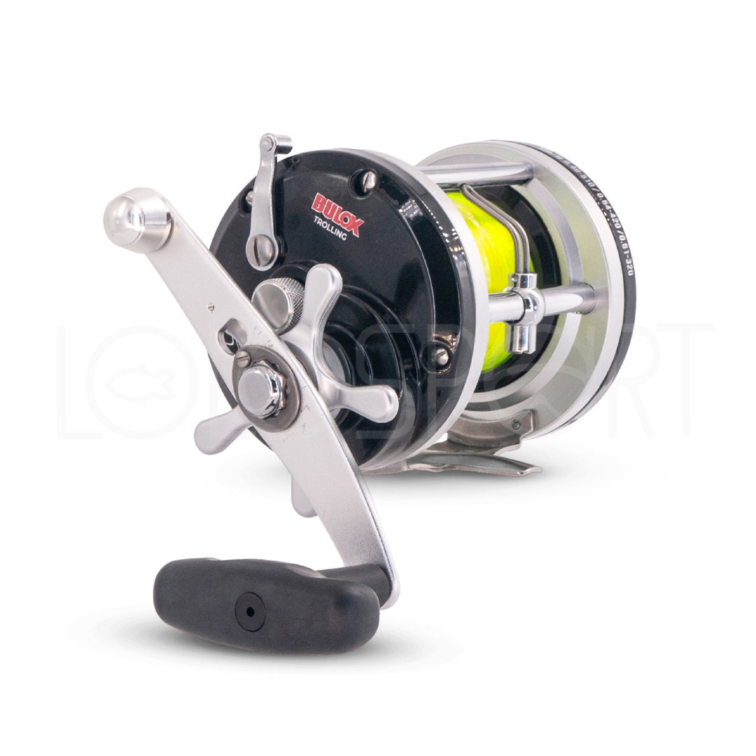 Mulinello da traina, con corpo in grafite ed accessoriato con frizione a stella e guidafilo. Un attrezzo leggero e molto resistente che viene fornito già equipaggiato con monolofilo dal colore giallo.