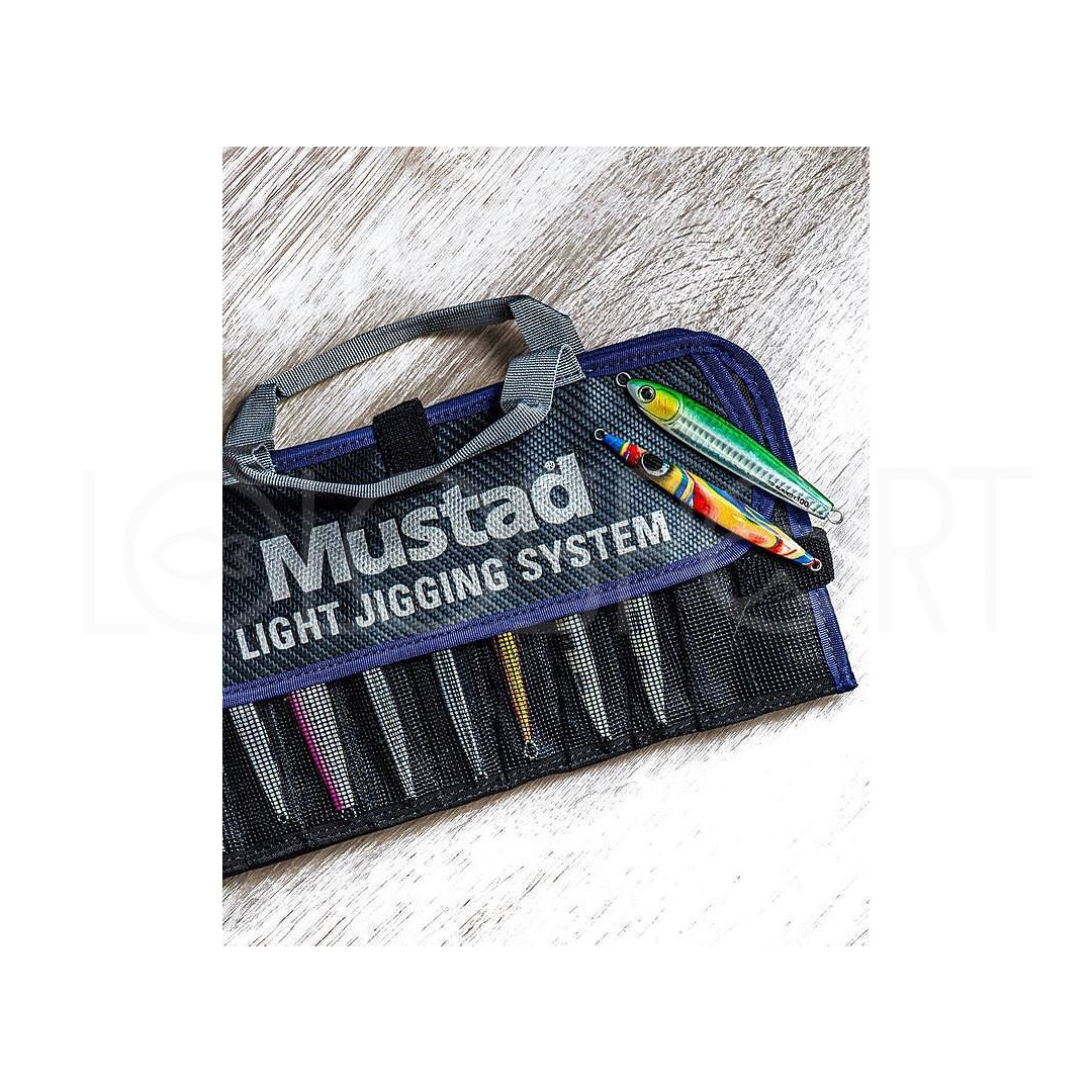 Mantenere l’ordine nella barca e a casa fa parte del divertimento. La custodia impermeabile per jig Mustad presenta molte tasche per esche e jig realizzate in un resistente materiale a maglie. La custodia reversibile ha 12 scomparti per jig fino a 6″/15cm, 10 scomparti per jig più piccoli della stessa lunghezza e 2 grandi tasche per accessori da jigging. In totale, questo pratico portafoglio può contenere 22 jig più spazio per ami assist, materiale per terminali e molto altro ancora. Caratteristiche 500Denier Tarpaulin, maniglia per il trasporto con una sola mano e chiusura a strappo in velcro.