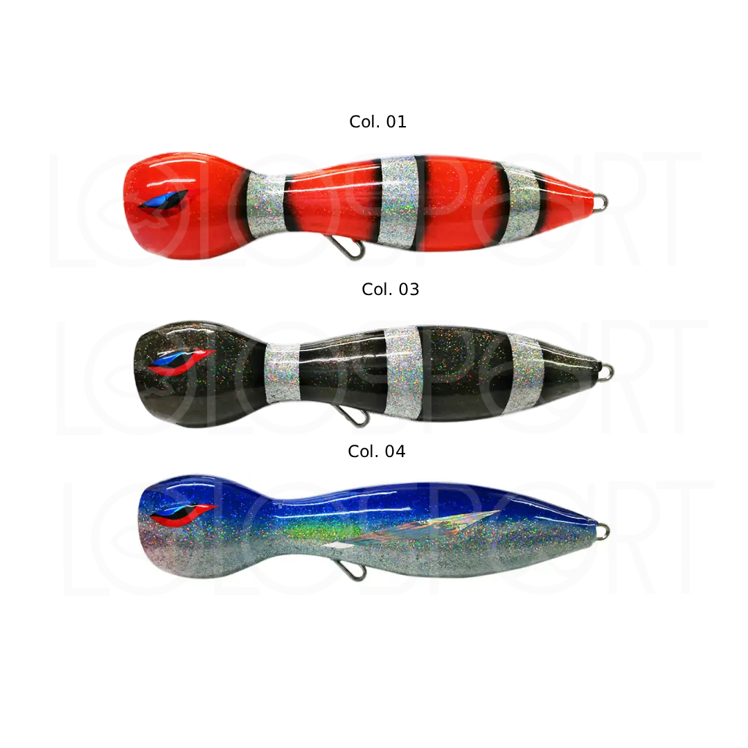 Il Devil Popper con cup rivolta verso il basso è un popper classico, progettato per generare un’azione potente e regolare tipo “gobo → splash”.