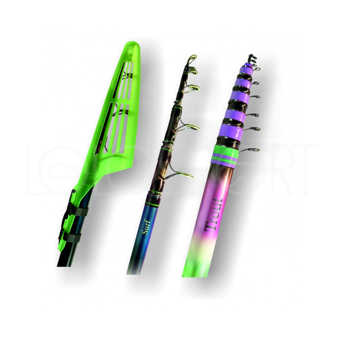 Salvanelli in materiale infrangibile trasparente con sistema di bloccaggio rapido “SBS”. Modelli adatti per canne da surfcasting e teleregolabili per trota (Mis.2). Brevettato