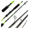 La zona dalla punta al medio è calibrata per offrire la giusta potenza: il jig, una volta lanciato lontano, può muoversi a volte in modo delicato, altre volte in modo deciso, in base al recupero. I terminali (guide) hanno diametro inferiore rispetto alle canne shore jigging standard, per adattarsi alle linee PE sottilissime e garantire una sensazione di grande leggerezza nell’azione di pesca.