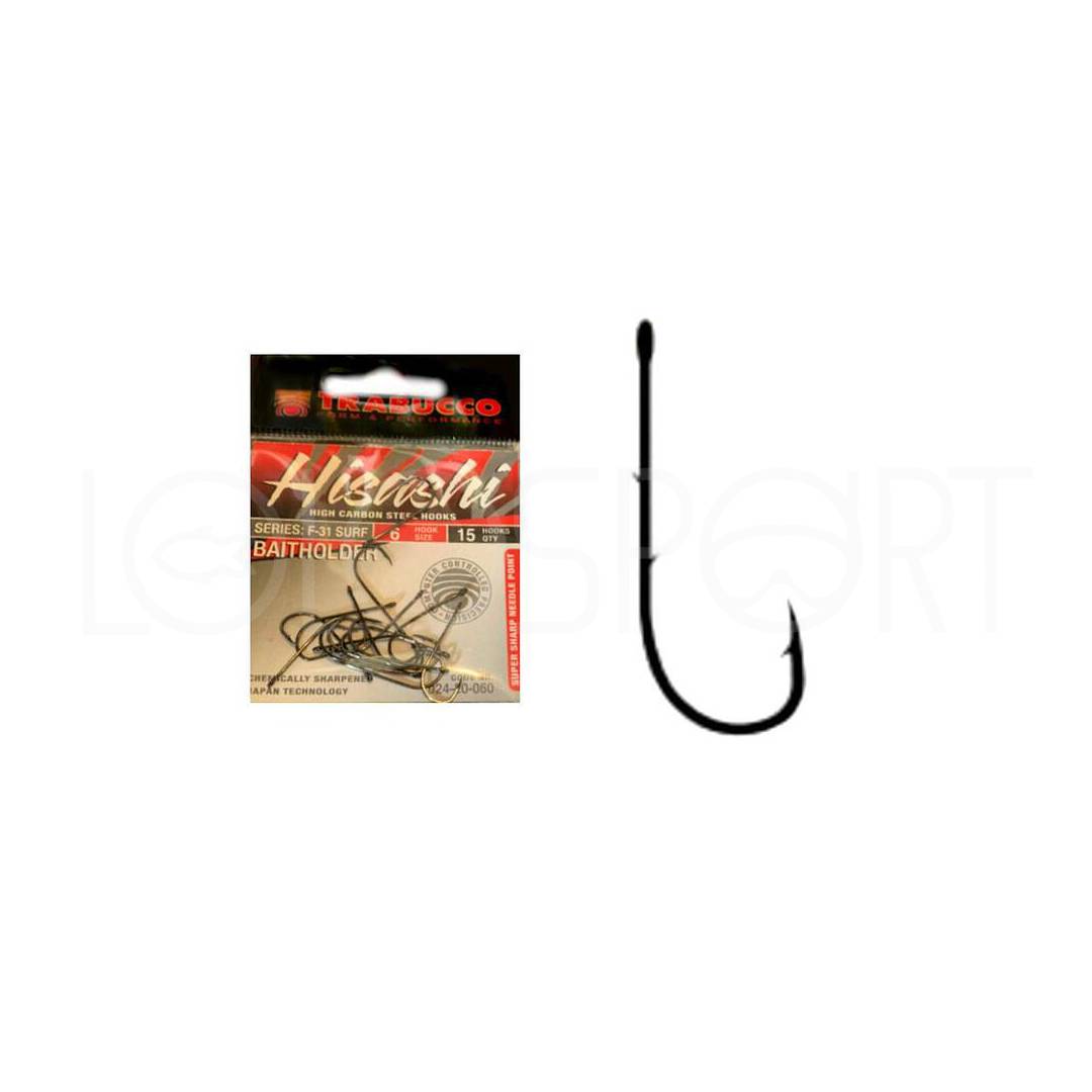 Trabucco Hisashi F-31 Surf amo da pesca ideato per l’innesco di arenicola o tremolina. Amo con punta super affilata, gambo lungo diritto cosicché agevola le operazioni di innesco e occhiello che offre diverse soluzioni di legatura. Adottato sulle spiagge di tutto il mondo come uno dei più efficienti ami da surfcasting, il modello F-31 è oggi disponibile anche con due ardiglioni ferma-esca sul gambo: uno all’interno e l’altro all’esterno. Essi cooperano trattenendo i lunghi vermi, che nel lancio tendono a scivolare verso la curva. La finitura Black Nickel garantisce protezione per la punta, altrimenti a rischio fra le onde in ambiente salino e sabbioso.