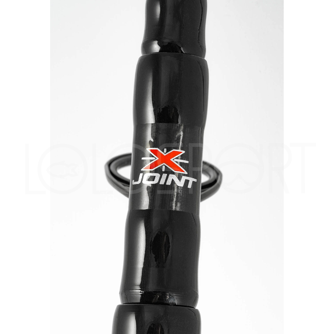I giunti che collegano le sezioni di qualsiasi canna da pesca sono punti deboli, sia dal punto di vista della resistenza, sia da quello dell’azione, perché causano i cosiddetti “punti morti”, che sono zone a rischio di rottura, al di là dell’inestetismo. La soluzione sta nella tecnologia X-JOINT, che prevede la disposizione delle fibre di carbonio a 45° anziché a 90° in corrispondenza dei giunti.